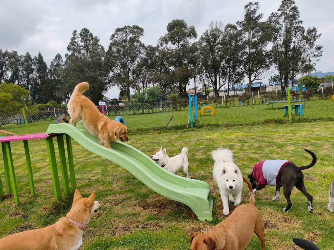 Somos una guardería canina campestre con espacios adaptados que estimulan la tranquilidad y el bienestar de toda nuestra manada. Nos desarrollamos en un ambiente seguro, divertido y estimulante donde tu mascota se sentirá feliz y cómoda en todo momento.